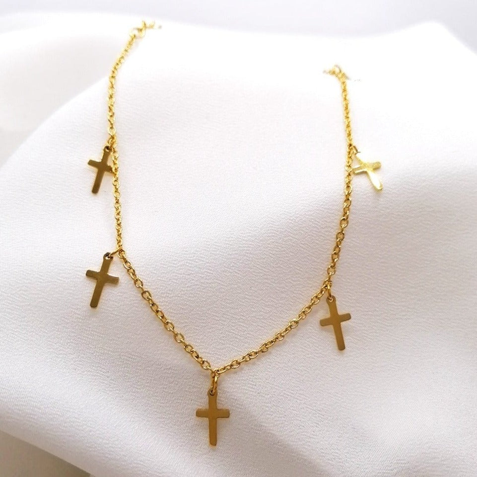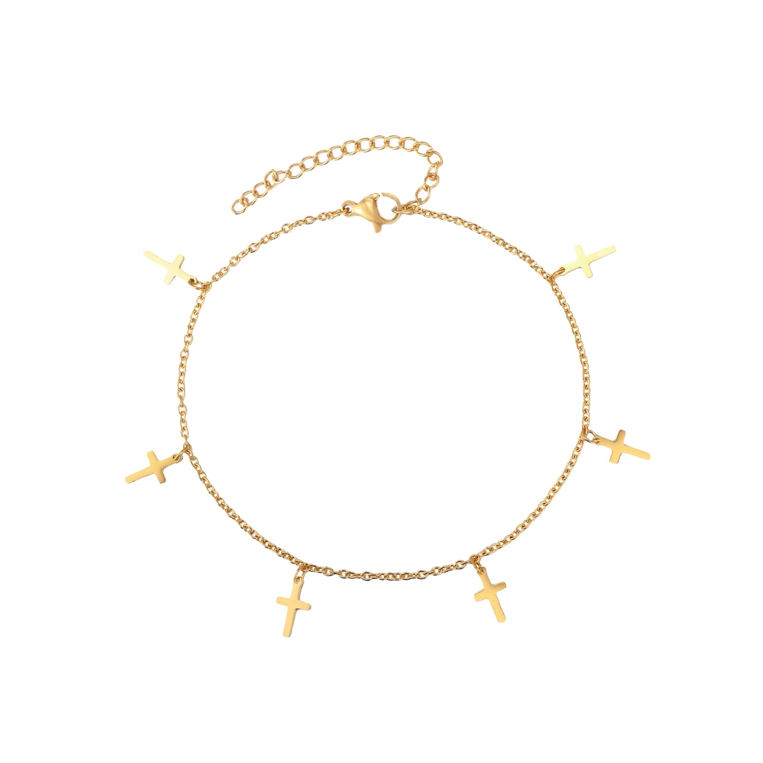Introduce a touch of faith and elegance to your look with our stainless steel gold plated and waterproof cross anklet. This beautiful piece is the perfect accessory for anyone looking to add a spiritual touch to their everyday style. The cross design is a timeless symbol of faith, and the gold plating adds a touch of luxury and elegance. The stainless steel material ensures that this anklet is durable and long-lasting, and the waterproof feature makes it perfect for everyday wear. Whether you're dressing up for a special occasion or just adding a touch of style to your everyday look, this anklet is the perfect choice.