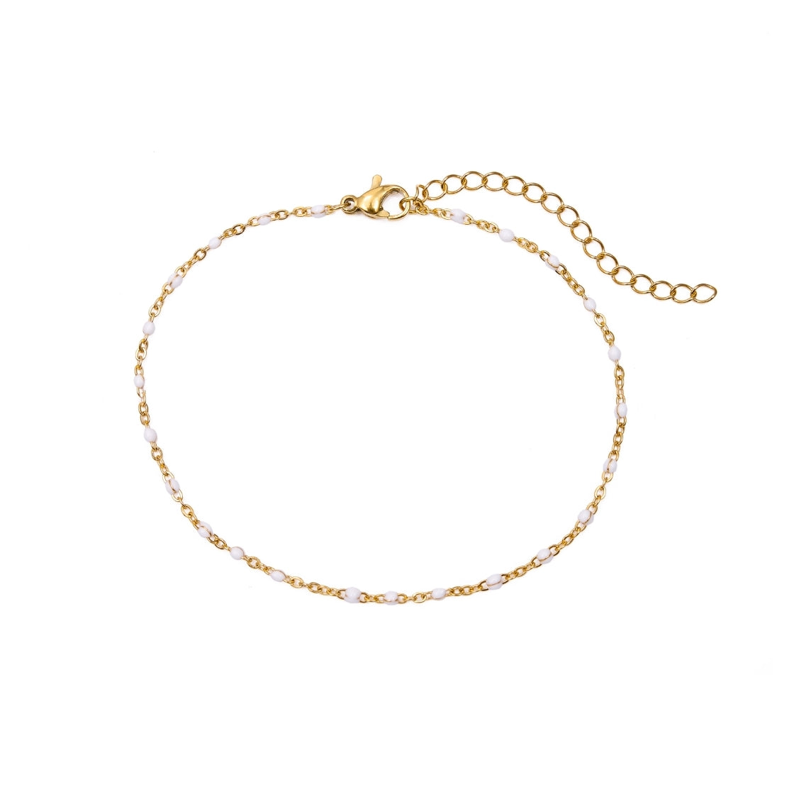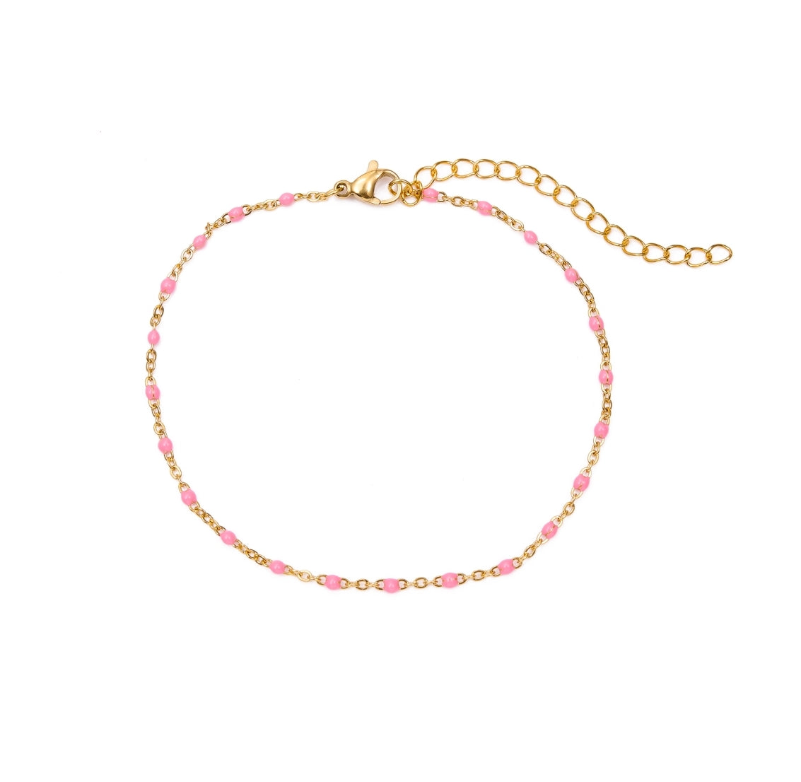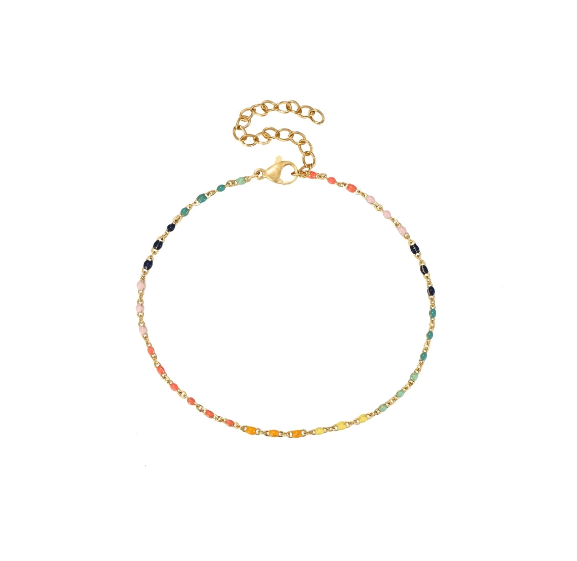 These delicate gold enamel bracelets add a vibrant touch to your look, available in a variety of colors to match any style or occasion. Complete the set with matching necklaces for a coordinated and elegant ensemble.