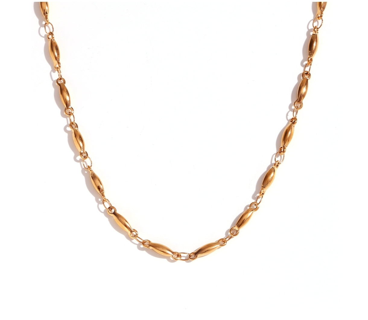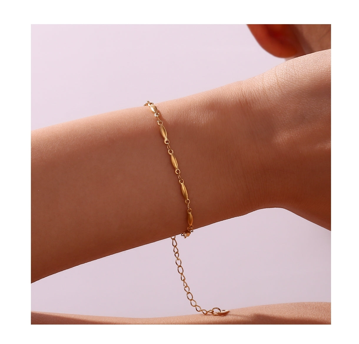 A delicate thin gold bracelet with oval links, offering a timeless and elegant design.