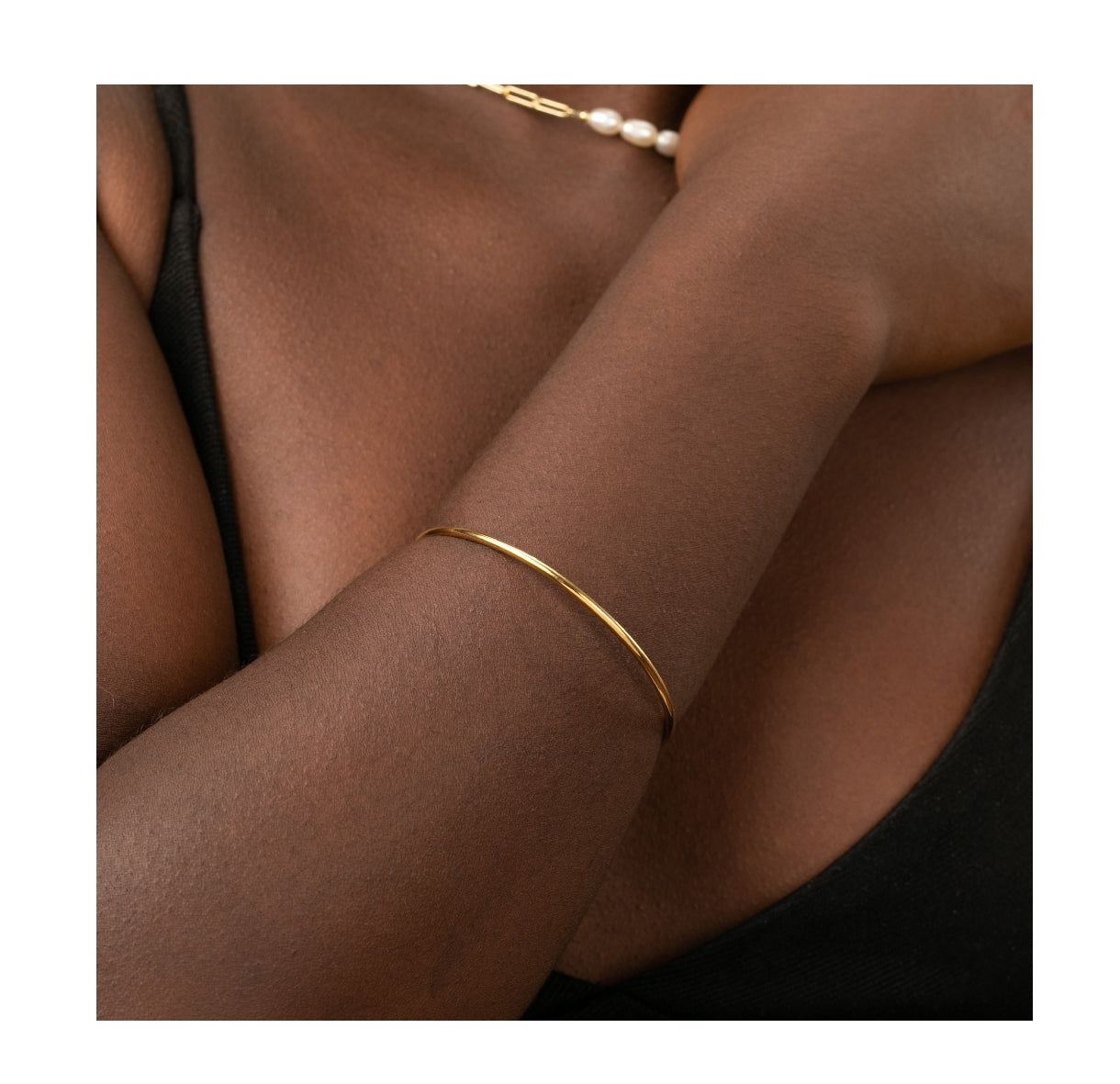 Sleek and timeless, this gold bracelet adds a touch of elegance to any outfit with its minimalist design.