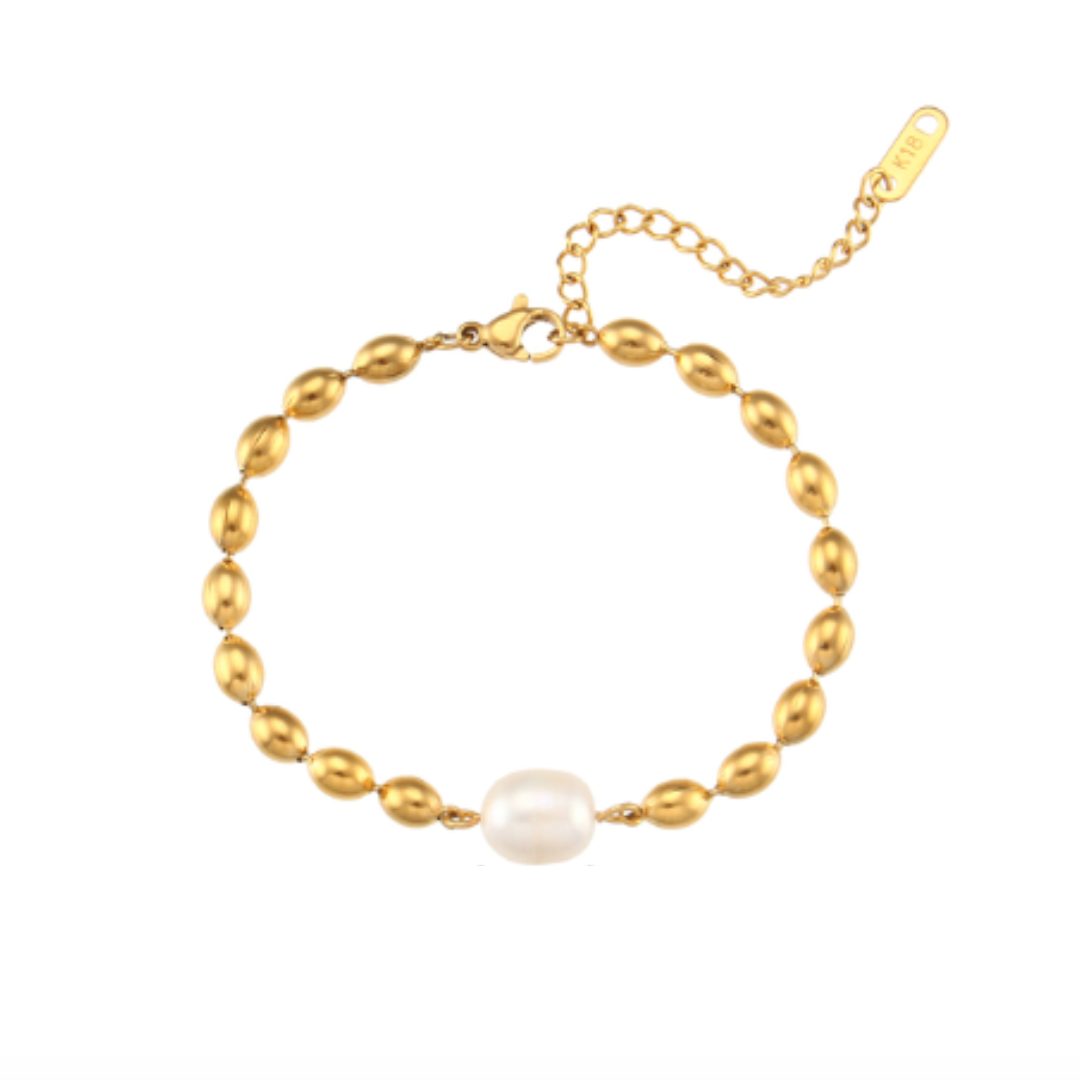 Add elegance to your style with this gold-plated, waterproof bracelet featuring a floating pearl — a timeless symbol of purity and beauty. Durable for everyday wear or special occasions, and perfect when paired with the matching necklace.