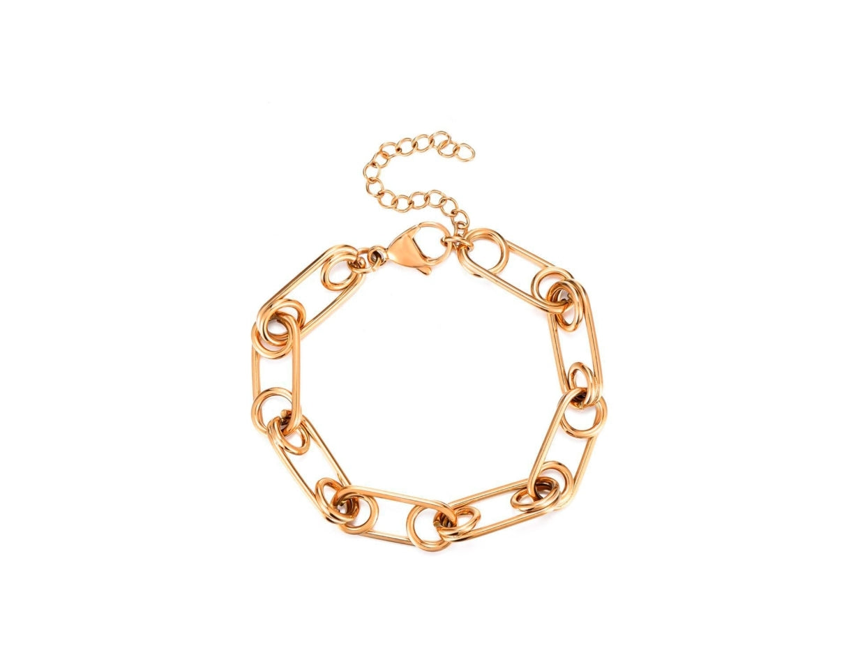 Playful yet polished — this bold link bracelet features interlocking loops that dance with every move. A statement on its own, and even better paired with the matching necklace for a look that’s twice as striking!