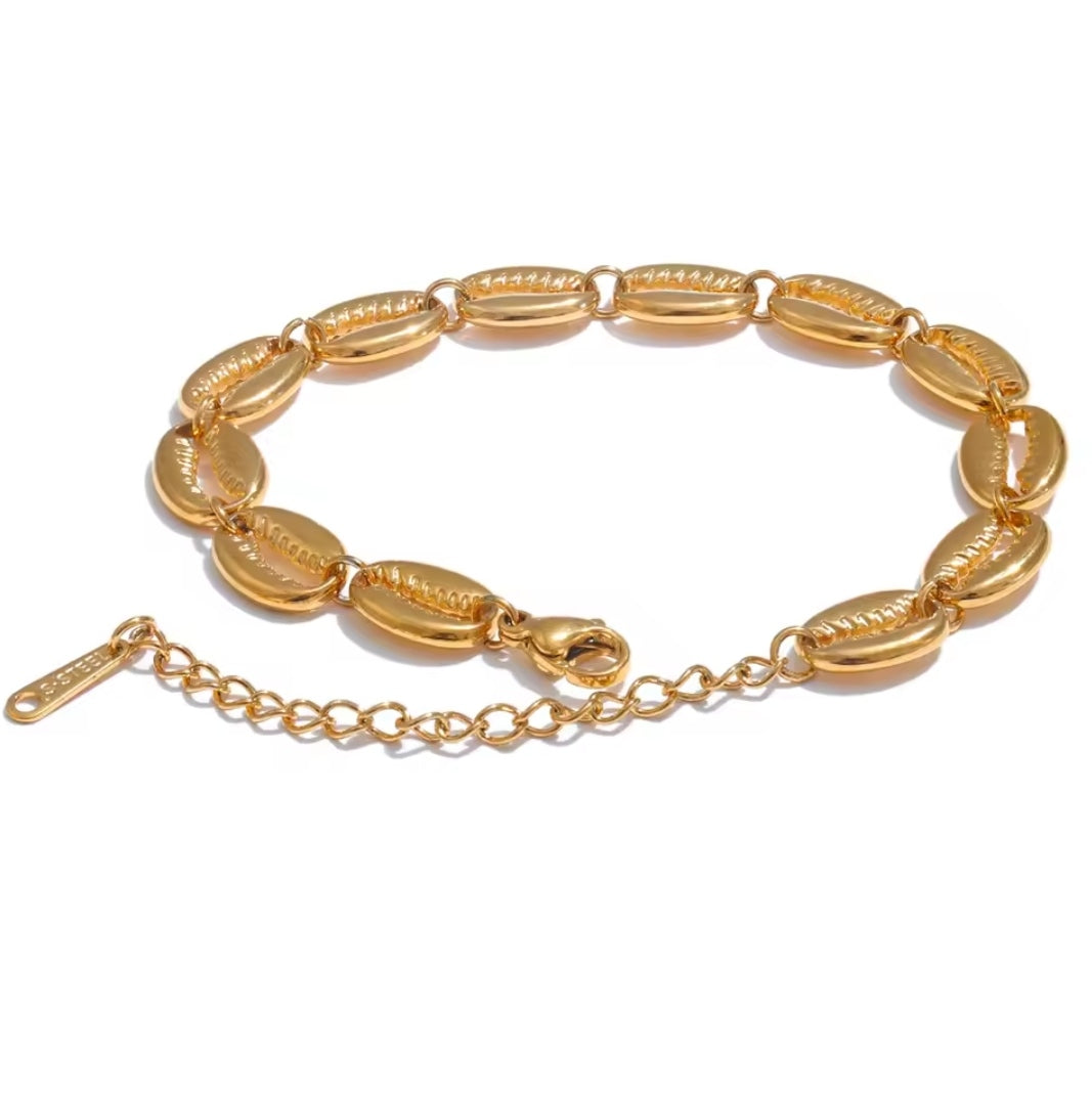 This golden bracelet, adorned with charming gold seashells, brings a touch of the beach to your wrist. Perfect for adding a coastal vibe and a little sparkle to any look!