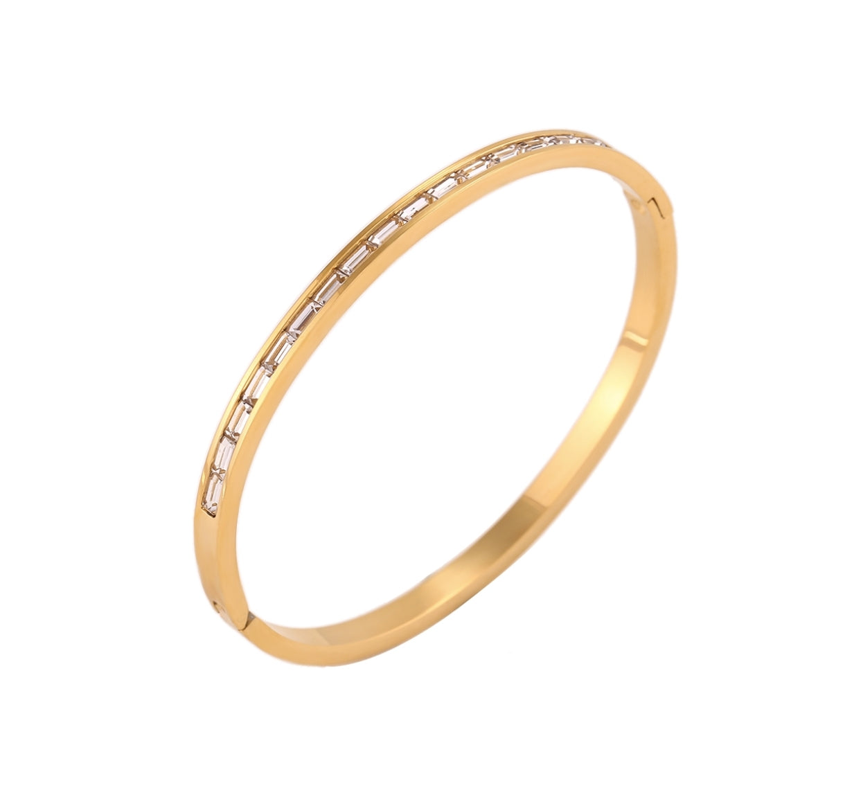 Sleek, golden, and lined with shimmering zirconia — this elegant cuff is your go-to for effortless glam. Subtle sparkle, major impact.