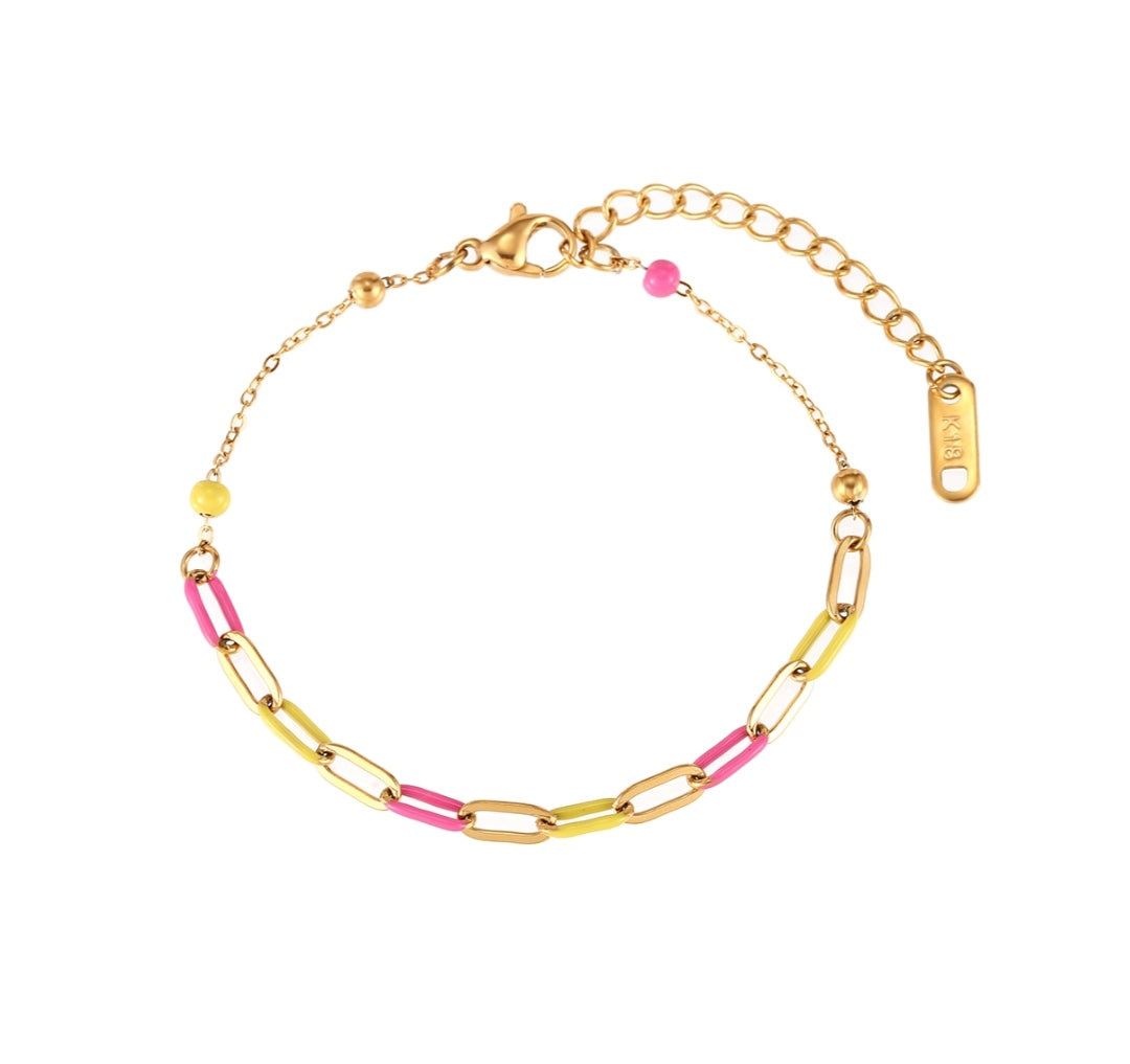 Brighten your look with this cheerful gold chain bracelet, featuring pastel pink and sunny yellow enamel links! A sweet and stylish touch to any outfit!