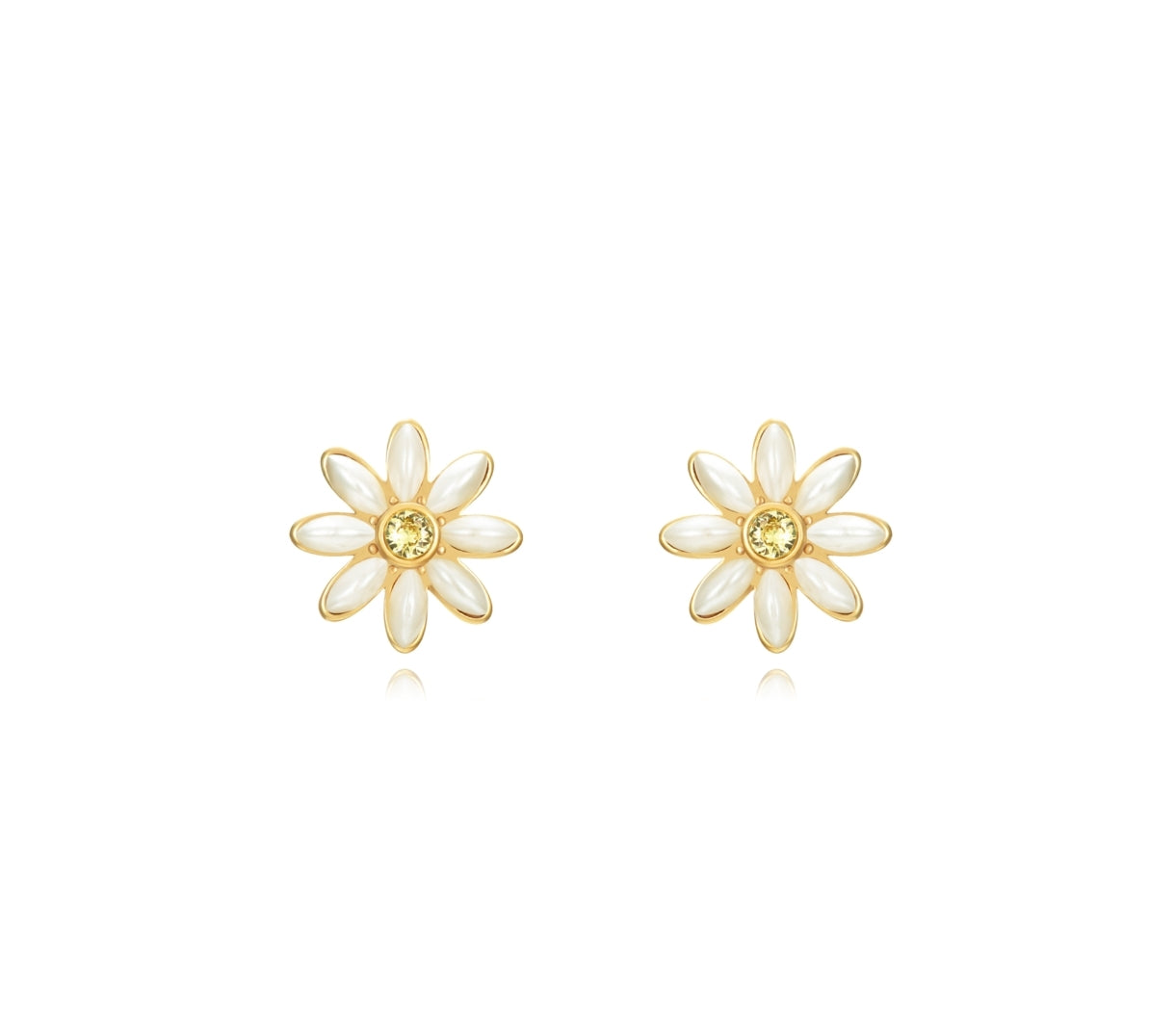 These dainty daisy earrings are pure sunshine in jewelry form. With pearly petals and a golden sparkle at the center, they’re the perfect blend of sweet and chic — a little touch of spring for any season.