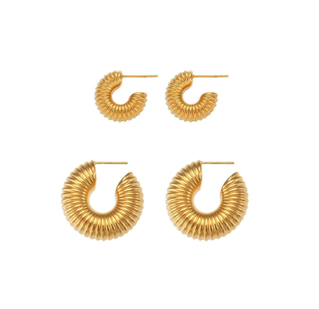 Elevate your style with these stunning ribbed gold hoop earrings, available in two sizes for the perfect look. Choose the bold, statement-making large hoops or the chic, everyday smaller pair—both designed for effortless elegance, day or night.