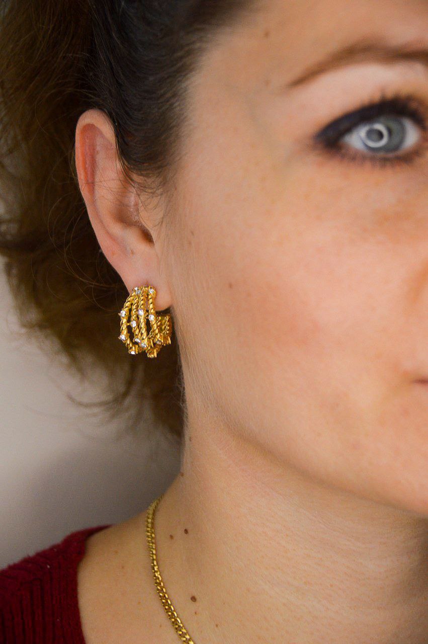 Make a bold statement with our stainless steel gold plated quadruple half hoop earrings with sparkling zirconia. These earrings feature a unique and edgy design, with four half hoops that are connected to create a bold look. The gold plating adds a touch of luxury and richness to the stainless steel material, making these earrings durable and long-lasting. The sparkling zirconia adds a touch of glamour and glitz, catching the light beautifully and adding a touch of elegance to any outfit. These earrings are perfect for any occasion, whether you're dressing up for a special event or adding a touch of edge to your everyday look.