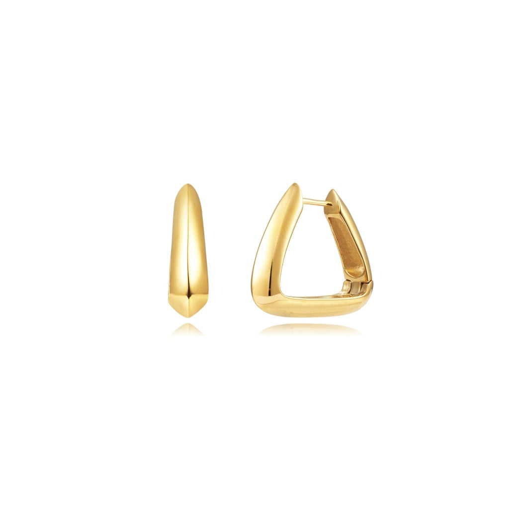 Add a modern edge to your look with these stunning gold triangle hoop earrings. Their sleek geometric design brings bold sophistication and a touch of uniqueness to any outfit, perfect for standing out effortlessly.