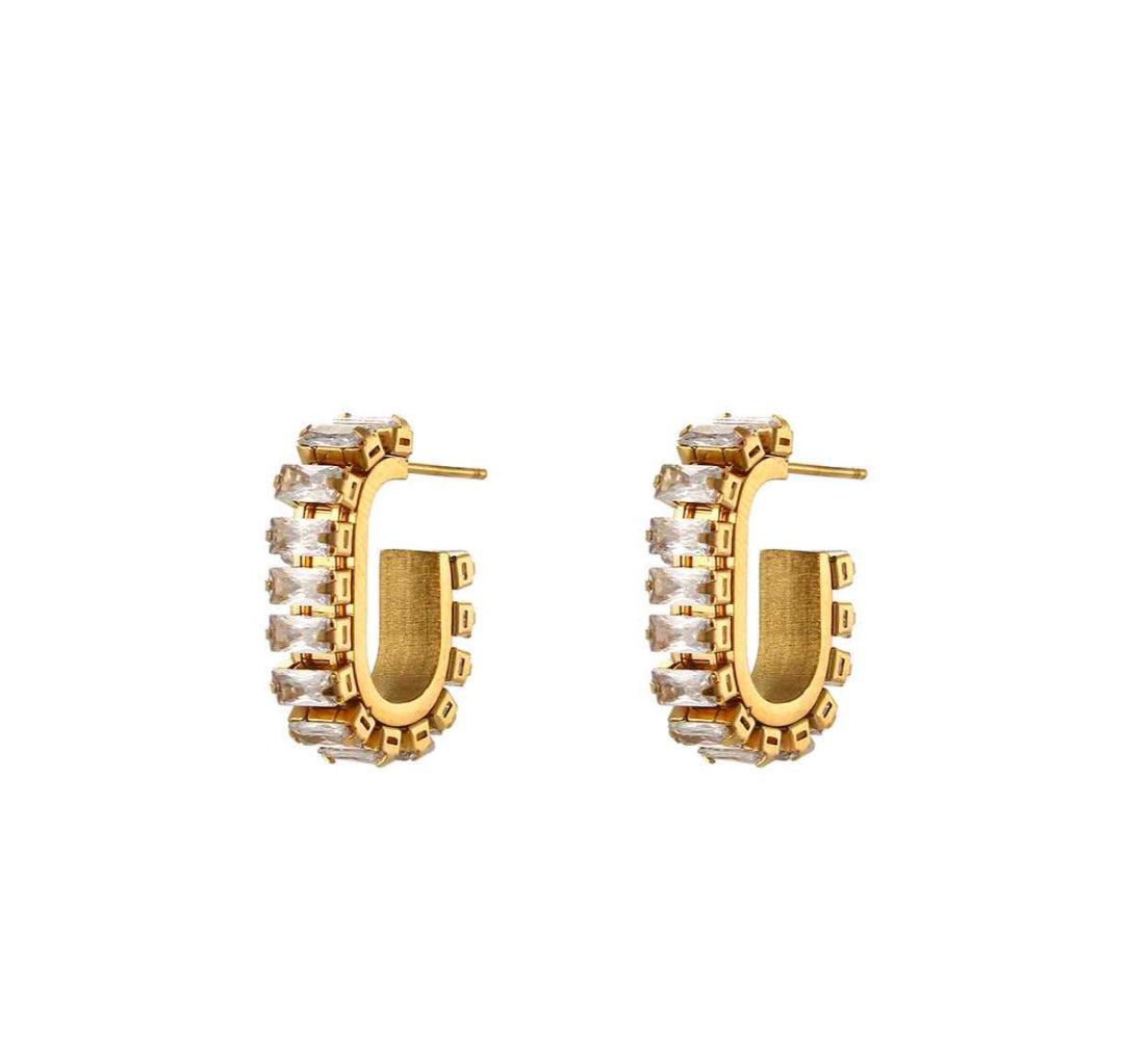 Shimmer in style with these dazzling zircon-studded hoops! Crafted with waterproof magic, they’ll sparkle through rain, pool parties, and all your adventures!