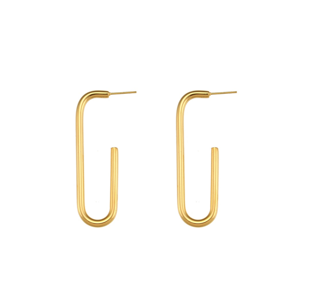 These minimalist gold earrings feature a sleek, elongated U-shape design, perfect for a modern and understated look. Lightweight and versatile