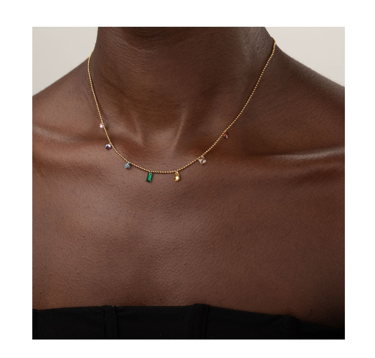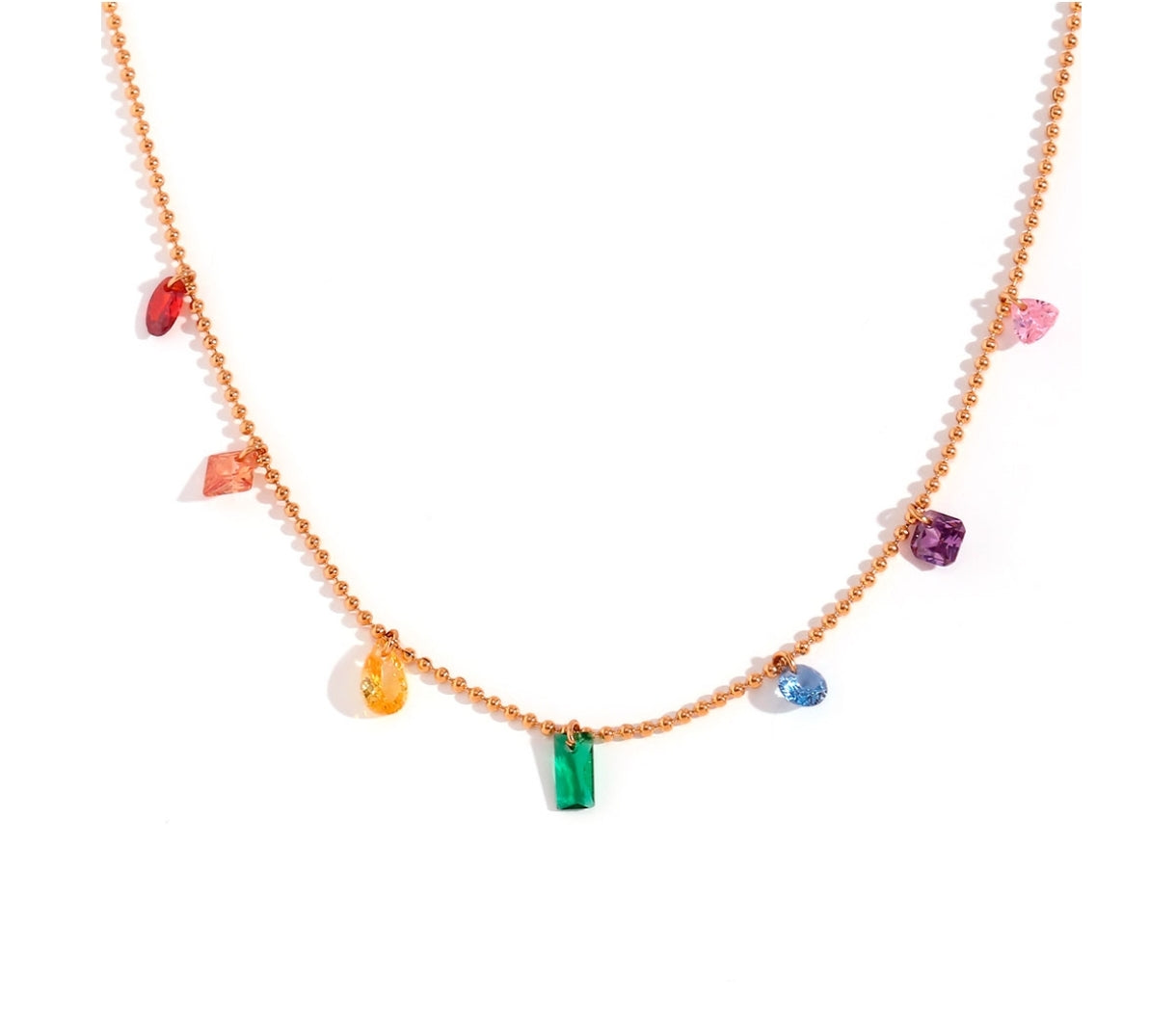 Elevate your elegance with a burst of vibrant colors, courtesy of our stunning Zirconia Stone Necklace. Each stone is a sparkling masterpiece, adding a touch of glamour to any outfit.