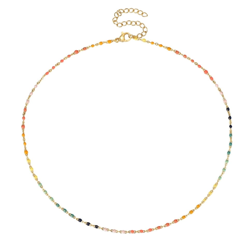 These elegant gold enamel necklaces bring a pop of color to your outfit, available in a variety of shades to suit any style. Pair them with matching bracelets for a perfectly coordinated and stylish look.