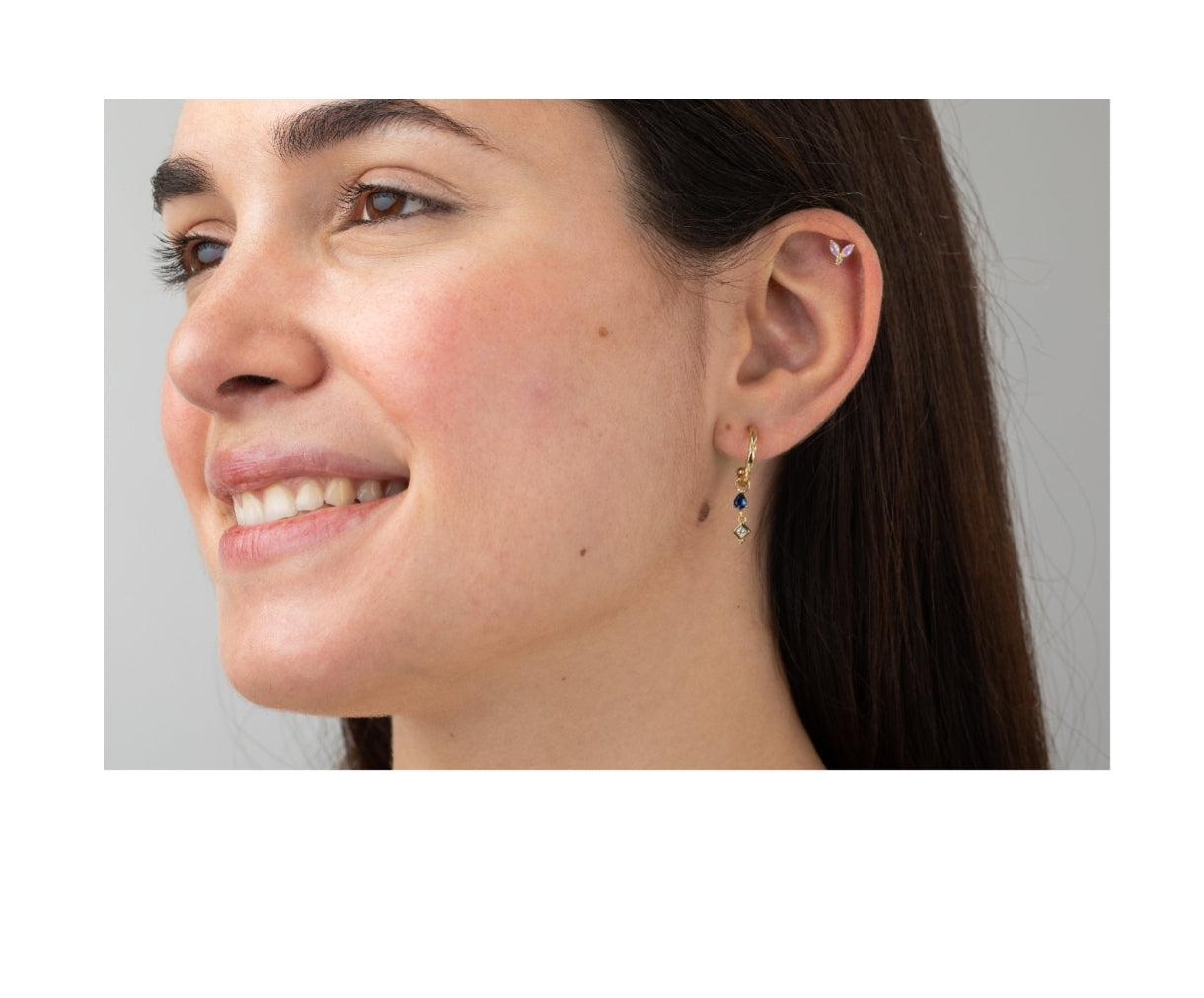 This piercing features a delicate flower design with shimmering lilac petals and a sparkling zirconia center. Elegant and dainty, it’s the perfect touch of charm for any look.