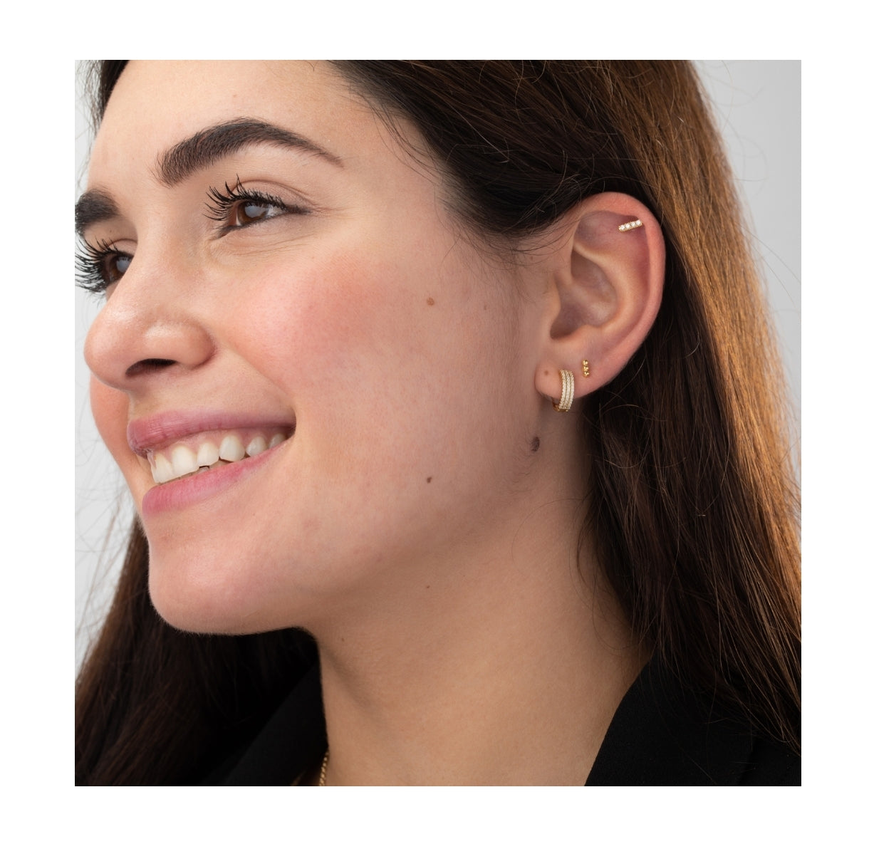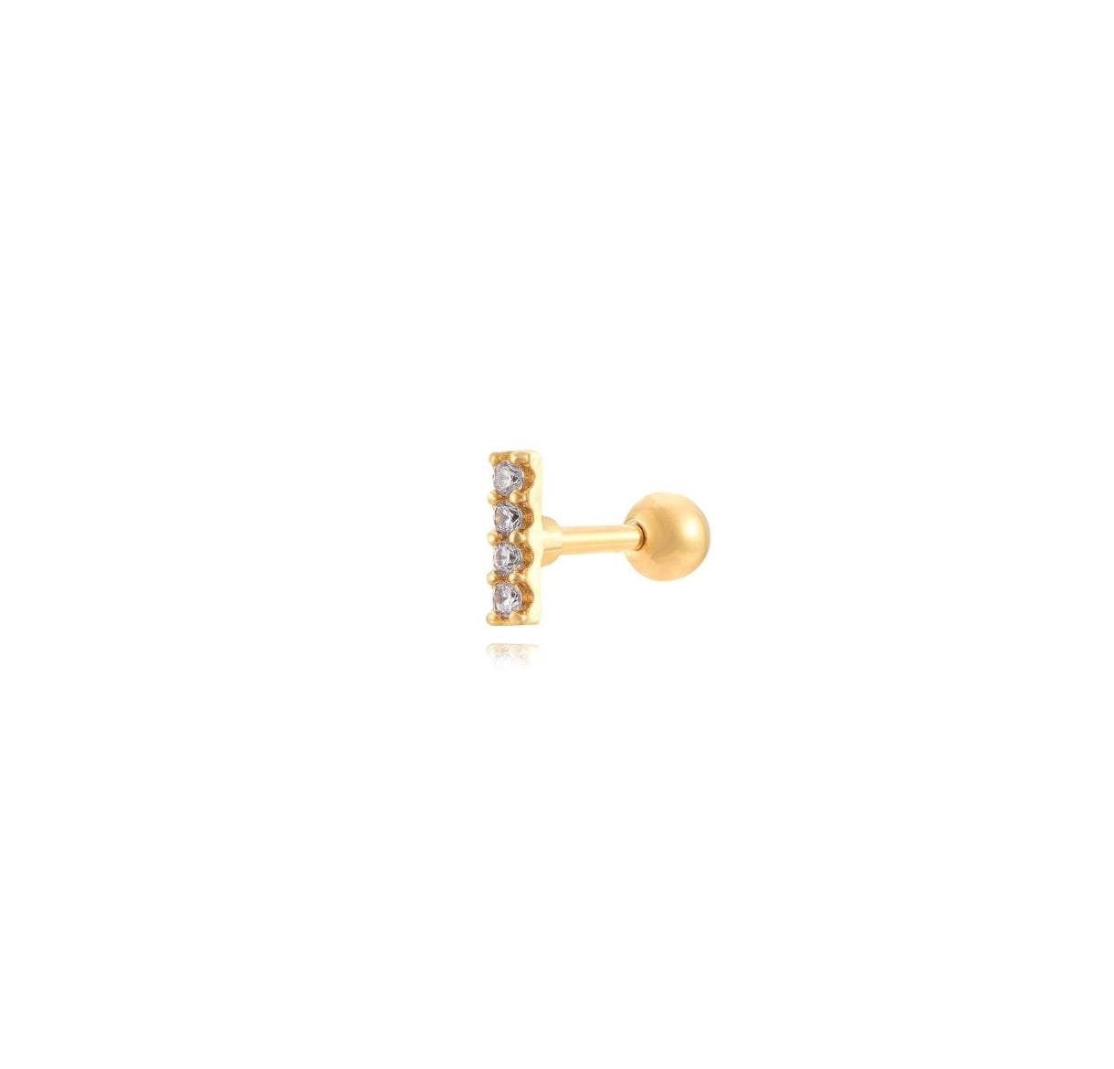 This chic little bar piercing sparkles with tiny zircons, adding just the right touch of shine and elegance. A perfect blend of sleek and sparkle, it’s subtle but definitely eye-catching!